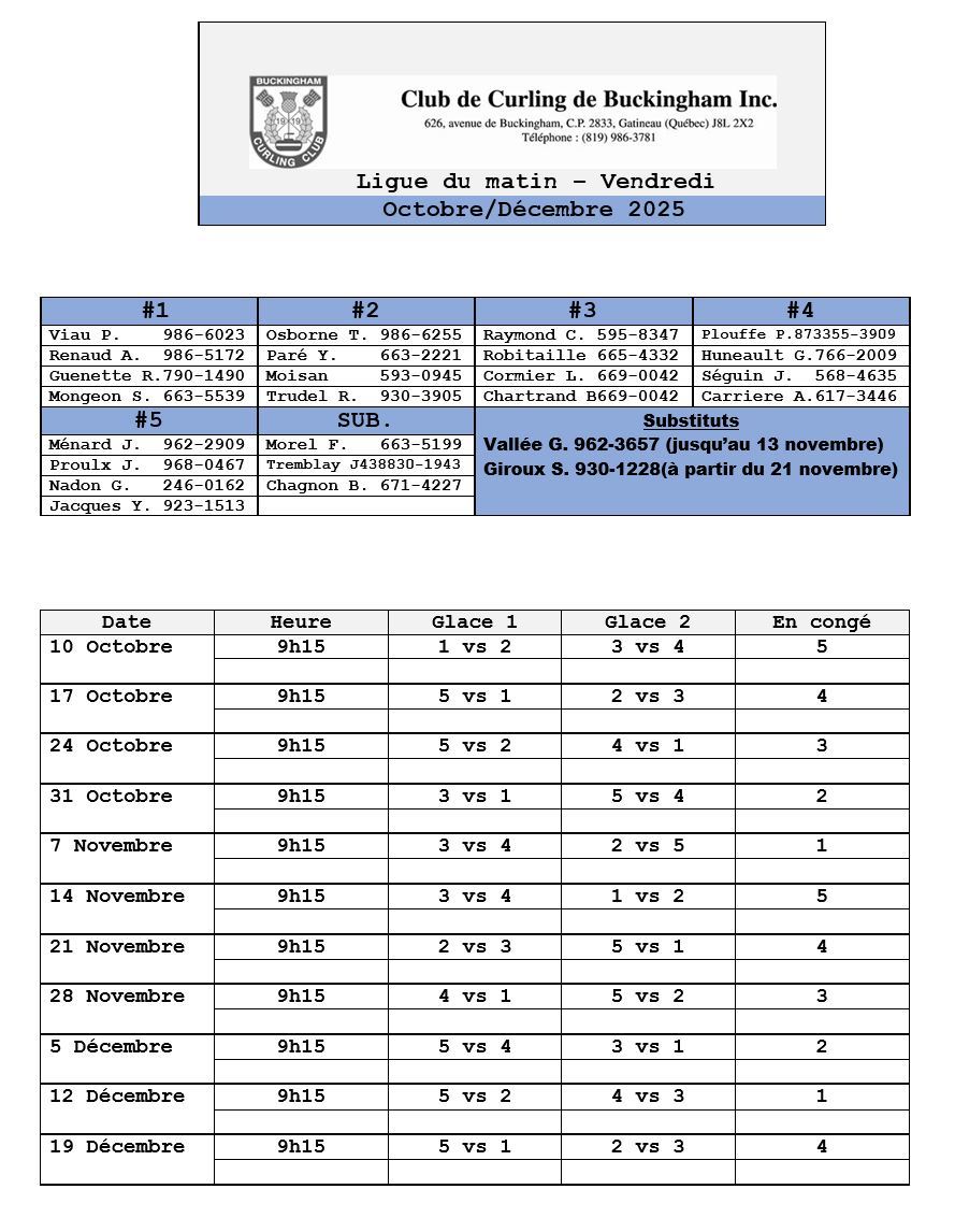 Inscription : les équipes sont formées par le responsable en octobre, janvier et mars.